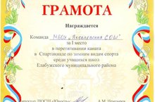 Команда МБОУ "Яковлевская средняя школа" награждена Грамотой за I место в перетягивании каната по зимним видам спорта среди учащихся школ Елабужского муниципального района