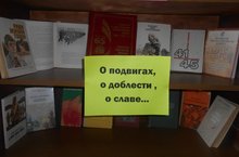 В рамках Месяника военно-патриотического воспитания в школьной библиотеке оформлена выставка книг "О подвигах! О доблести! О славе..."