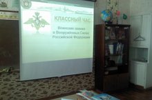 В рамках месячника гражданско-патриотического воспитания в школе проводятся различные мероприятия. Учительница начальных классов Машанова К.М. провела классный час " Воинские звания в Вооруженных силах Российской Федерации" .