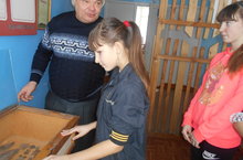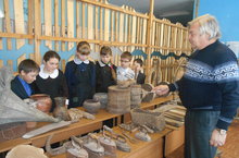 Сегодня прошёл очередной музейный урок в 5 классе. Руководитель школьного музея Колчин Ю.М. познакомил ребят с историей села и школы, с предметами быта и ценными экспонатами музея