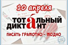 10 апрельдә традицион халыкара Тоталь диктант булды. Бу мәгърифәтчелек акциясе 2004 елдан башлап ел саен үткәрелә. Чараны оештыручылар-волонтерлар оешмалары һәм битараф булмаган кешеләр. Әлеге иҗтимагый проектның максаты-рус телен яратучыларны, анда дөрес итеп сөйләргә һәм язарга теләүчеләрне берләштерү. Безнең мәктәп дә читтә калмады һәм диктантта актив катнашты.