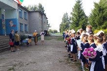 1 сентября учащиеся школы, педагоги и родители собрались на праздник Первого звонка./1 сентябрь көнне мәктәп укучылары, педагоглар һәм ата-аналар беренче кыңгырау бәйрәменә җыелды.