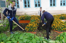 Цветник "Салют Победы" 04.09.2015 Уборка вокруг цветника "Салют Победы"