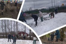 Сегодня прошёл весенний субботник, в котором приняли участие учителя и весь персонал школы. Все с радостью приводили в порядок школьную территорию: раскидывали снег,собирали мусор, убрали засохшие кустарники\Бүген язгы өмә булып узды, анда мәктәп укытучылары һәм барлык персоналы катнашты. Барысы да мәктәп территориясен бик теләп тәртипкә китерделәр: кар тараттылар,чүп-чар җыйдылар, корыган куаклар җыештырдылар.