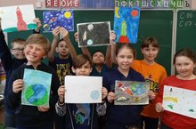 К прекрасному празднику - Дню космонавтики в в начальных классах был проведен конкурс детского рисунка. Учащиеся рисовали разный космос: планеты, космические корабли, космические пейзажи, инопланетных жителей! Фантазия детей была безгранична!/Космонавтика көне уңаеннан барлык башлангыч сыйныфларда да балалар рәсеме конкурсы үткәрелде. Укучылар төрле космос ясадылар: планеталар, космик корабльләр, космик пейзажлар, чит планетада яшәүчеләр! Балаларның фантазиясе чиксез иде!