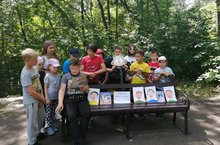 Сегодня лагерь побывал в Александровском парке, в котором библиотекой "Серебряный век" и национальным парком "Нижняя Кама" были организованы мероприятия: "Книжная ПАРКовка", "Беседа о животных, обитающих в парке"," Весёлые старты".