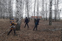 Учащиеся начальной школы поработали сегодня на ура. Собирали веточки берез за забором./ Башлангыч мәктәп укучылары бүген бик яхшы эшләделәр. Койма артында ботаклар җыйдылар.