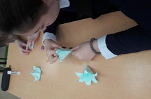 С учащимися школы начали подготовку к празднованию Великой Победы в ВОВ. Делаем цветы своими руками. / Мәктәп укучылары белән Бөек Җиңүнең 70 еллыгына әзерлек эшләре башланды. Үз кулларыбыз белән чәчәкләр ясыйбыз.