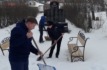 Учащиеся школы регулярно проводят уборку возле памятника. Сегодня почистили снег, подметали. / Мәктәп укучылары һәйкәл янында даими җыештырып торалар. Бүген кар чистарттылар, себерделәр. -