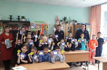 Сегодня с учащимися начальных классов прошла встреча с инспектором ДПС Штенниковым Д.А.и начальником отделения ДПС ОГИБДД отдела МВД России по Елабужскому району Насыровым И.Я. Беседовали о правилах дорожного движения, пешеходный переход, езда на велосипедах, подарили световозвращающие элементы. / Бүген башлангыч сыйныф укучылары белән юл-патруль хезмәте инспекторы Штенников Д.А. һәм Россия эчке эшләр министрлыгының Алабуга районы буенча ЮХИДИ бүлегенең юл - патруль хезмәте бүлеге башлыгы Насыров И.Я. белән очрашу узды.