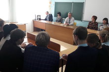 В рамках празднования Дня учителя в школе прошла акция "Классная встреча" с директором и учителями. Учащиеся 7-11 классов задавали учителям вопросы, интересующие их. Например: любители Вы свою работу? какой у Вас любимый предмет? что Вас огорчает? и т.д./ Укытучылар көне бәйрәм итү кысаларында мәктәптә директор һәм укытучылар белән "Сыйныф очрашуы" акциясе узды. 7-11 сыйныф укучылары укытучыларга үзләрен кызыксындырган сораулар бирделәр. Мәсәлән: Сез үз эшегезне яратасызмы? Сезнең яраткан фәнегез нинди? Сезне нәрсә борчый? һ. б. -