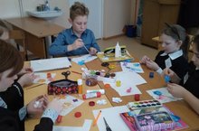 В рамках акции осенней недели Добра прошел мастер-класс по технологии "Изготовление открытки методом "жатки" . Учащиеся с интересом провели время, они изготовили открытки, которые подарят на День пожилого человека. / Көзге игелек атнасы кысаларында "Яңа ысул белән" открыткалар ясау буенча мастр-класс узды. Укучылар вакытны бик яхшы уздырдылар, әлеге открыткаларны алар Өлкәннәр көнендә бүләк итәчәкләр. -