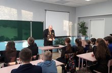 Перед учащимися школы выступали представители лекторской группы совета ветеранов г.Елабуга Виктор Васильевич Кусакин и Трофимов Иван Иванович./ Мәктәп укучылары алдында Алабуга шәһәре ветераннар советының лекторлар төркеме вәкилләре Виктор Васильевич Кусакин һәм Трофимов Иван Иванович чыгыш ясады. -