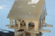 Братья Петровы изготовили двухэтажную кормушку для зимующих птиц. Эта кормушка была отправлена в Нижнюю Каму на конкурс. И вот она установлена на Святом ключе и радует своих пернатых друзей. -