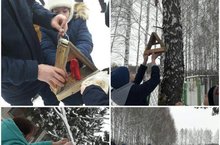 Сегодня с учащимися школы организовали на территории участка школы школьную птичью столовую. -