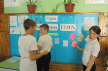 В школе прошла акция «Что такое ГТО?» После классных часов, посвященных этой акции, волонтёры из 6 класса раздали всем карточки, чтобы участники акции написали, что же такое ГТО? В течение дня вся школа приняла активное участие в данной акции. После всех уроков волонтеры собрали ответы и прикрепили на стенд. До конца этой акции, т.е. до 7 апреля, ознакомимся с ответами и отберем наиболее интересные. -