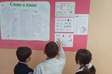 В рамках декада родного языка оформлен стенд "Родное слово". Ребята могут узнать интересные факты из истории языка, происхождение крылатых выражений, высказывания о родном языке. Кроме того, на стенде есть множество ребусов и кроссвордов. -