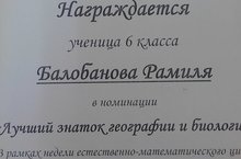В рамках предметной недели естественно-математических дисциплин прошли открытые уроки и внеклассные мероприятия. Были награждены лучшие знатоки географии и биологии Рябов Дмитрий и Балобанова Рамиля. Поздравляем!!! -
