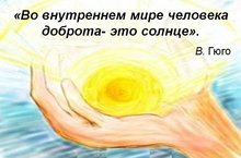 Коллектив нашей школы призывает всех присоединиться к этому замечательному празднику. Ведь это так просто – улыбнитесь прохожему, обнимите родителей или друга, сделайте комплимент коллеге или начальнику, подарите цветы соседке или незнакомке, позвоните друзья и скажите им какие они замечательные, переведите через дорогу бабушку, но только ту, которой точно надо на другую сторону проезжей части, смастерите и повесьте на улице кормушку для птиц, накормите бездомного котёнка или щенка… И этот список можно продолжать долго. Всё это займёт мало времени и усилий, но эффект будет колоссальным. Ведь с каждым таким, простым по сути, поступком становится кому-то лучше, а значит – и больше доброты в мире. И важно ещё помнить, что такими делами – проявлениями отзывчивости, симпатии, щедрости, дружелюбия, любви, благородства – мы учим делать добро и наших детей. И, конечно же, желательно творить добро каждый день, а не только сегодня – во Всемирный день Доброты. -