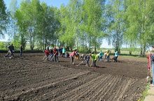 Сегодня дружно всей школой вышли на пришкольный участок, делали грядки, сажали лук, картофель, сеяли свеклу, морковь.Удивляется народ: