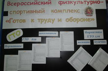 В нашей школе оформлен наглядный стенд с требованиями норм ГТО.