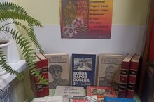 В школьной библиотеке оформлена тематическая выставка книг, посвящённая 80 летию Победы./ Мәктәп китапханәсендә Җиңүнең 80 еллыгына багышланган тематик китап күргәзмәсе оештырылды.