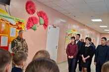 Сегодня прошла встреча с участником специальной военной операции (СВО), выпускником нашей школы. Боец поделился своими впечатлениями от службы, рассказал о важности дисциплины, командной работы и верности Родине. Особое внимание было уделено вопросам морального духа военнослужащих и значению поддержки со стороны гражданского населения. Встреча прошла в теплой и дружественной атмосфере. Ученики активно задавали вопросы, проявляя интерес к жизни военных и их повседневной деятельности. Участники мероприятия получили возможность глубже понять значимость служения Отечеству и осознать свою роль в поддержании единства страны./ Бүген безнең мәктәпне тәмамлаган махсус хәрби операциядә катнашучы белән очрашу узды. Сугышчы хезмәттәге тәэсирләре белән уртаклашты, дисциплинаның, командалы эшнең мөһимлеге һәм Ватанга тугрылык турында сөйләде. Аерым игътибар хәрбиләрнең әхлакый рухы һәм гражданнар ягыннан ярдәмнең әһәмияте мәсьәләләренә бирелде. Очрашу җылы һәм дустанә атмосферада узды. Укучылар, хәрбиләрнең тормышы һәм аларның көндәлек эшчәнлеге белән кызыксынып, актив рәвештә сораулар бирделәр. Укучылар Ватанга хезмәт итүнең әһәмиятен һәм илнең бердәмлеген саклауда үз рольләрен аңлау мөмкинлеге алды.