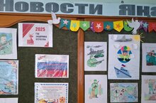 2025 год объявлен годом Защитника Отечества. В школе проводится ряд мероприятий, посвященных этому. Начальные классы оформили стенд, на котором представили свои рисунки, аппликации. / 2025нче ел Ватанны саклаучылар елы дип игълан ителде. Мәктәптә моңа багышланган чаралар үткәрелә. Башлангыч сыйныфлар рәсемнәр һәм аппликацияләр белән стенд ясадылар.