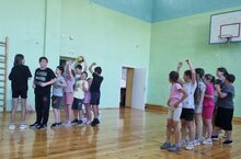Вторая половина дня сегодня посвящена спорту. Ребята с увлечением поучаствовали в "Весёлых стартах". Две команды - "Черепаха" и "Потолок" - испытывали себя в двенадцати эстафетах. Победила дружба!/ Көннең икенче яртысында спортка багышлана. Балалар "Күңелле стартларда" бик теләп катнаштылар. Ике команда - "Черепаха" һәм "Потолок" - үзләрен унике эстафетада сынады. Дуслык җиңде!