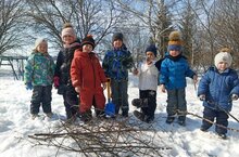 В течение недели на прогулке воспитанники детского сада "Радуга" дружно помогали в уборке прилегающей территории. Чистили снег, убирали опавшие ветки и подметали листву на веранде.
