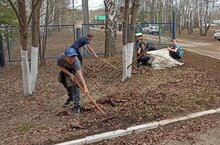 Сегодня учащиеся школы очистили территорию школы от прошлогодней листвы/ Бүген мәктәп укучылары мәктәп территориясен узган елгы яфраклардан чистарттылар.
