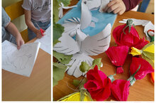 В преддверии Дня памяти и скорби, ребята прибывающие в пришкольный лагерь «Радуга» приняли активное участие в конкурсе рисунков на асфальте «Пусть всегда будет солнце!». Посмотрели документальный фильм «Садако Сасако и легенда о 1000 бумажных журавликах». В знак благодарности и признательности нашим героическим дедам и прадедам - участникам Великой Отечественной войны и труженикам тыла, ребята нарисовали и изготовили белых голубей. / Хәтер һәм кайгы көне алдыннан "Салават күпере"мәктәп яны лагерына килгән балалар асфальтта рәсемнәр конкурсында актив катнаштылар. «Садако Сасако һәм 1000 кәгазь торна турында легенда» — документаль фильм карадылар. Бөек Ватан сугышында катнашучыларга һәм тыл хезмәтчәннәренә рәхмәт йөзеннән, балалар ак күгәрченнәр ясадылар.