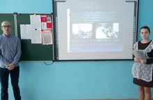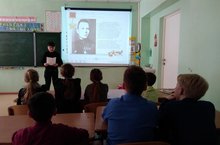В рамках мероприятий, посвященных дню рождения поэта, Героя Советского Союза Мусы Джалиля, прошел литературно-музыкальный час. Учащиеся узнали о непростой жизни поэта, о его творчестве. В исполнении детей прозвучали стихи поэта-героя и песни, написанные на его слова. Электронная презентация, кадры военной кинохроники, рисунки и плакаты учащихся дополняли устную информацию наглядными материалами. Была оформлена книжная выставка "По следам поэта-героя", на которой были представлены книги поэта./Советлар Союзы Герое Муса Җәлилнең туган көненә багышланган чаралар кысаларында «Гомрем минем моңлы бер җыр иде, үлемем дә яңрар җыр булып” дигән әдәби-музыкаль сәгать узды. Укучылар шагыйрьнең катлаулы тормышы, аның иҗаты турында белделәр. Балалар башкаруында герой-шагыйрьнең шигырьләре һәм аның сүзләренә язылган җырлар яңгырады. Электрон презентация, хәрби кинохроника кадрлары, укучыларның рәсемнәре һәм плакатлары телдән мәгълүматны күрсәтмә материаллар белән тулыландырдылар. "Герой-шагыйрь эзләре буйлап" дигән китап күргәзмәсе оештырылды, анда шагыйрьнең китаплары тәкъдим ителде. -
