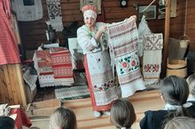 Музейный урок «Рушники - обереги России» для учащихся начальных классов провела Яркова Н.В. Ребята познакомились с историей появления рушников, с их видами. Каждому представилась возможность нарисовать свой узор рушника. На занятии прозвучали песни про самовар, блины. Закончился урок чаепитием с блинами./ Башлангыч сыйныф укучылары өчен «Рушниклар — Россия саклары» музей дәресен Яркова Н.В. үткәрде. Балалар рушникларның барлыкка килү тарихы, аларның төрләре белән таныштылар. Һәркемгә рушник бизәген ясау мөмкинлеге туды. Дәрестә самавыр, коймак турында җырлар яңгырады. Дәрес коймак белән чәй эчү белән тәмамланды.