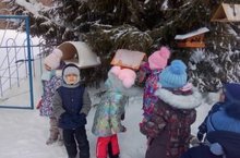 Без балалар белән урамга чыккач табигатьне, кошларны күзәтәбез, балаларга кышлаучы кошлар, аларның нәрсәләр белән тукланулары турында сөйлибез. Балаларга кошларның кешеләр янына очып килүләре, агачларда калган миләшләрне ашаулары, кешеләрдән калган азык-төлек калдыкларын чүпләүләре турында, кыш көне кошларның безнең ярдәмгә мохтаж икәнлекләрен аңлатабыз. Без - тәрбиячеләр һәм бакчада тәрбияләнүче балалар кошларга көчебездән килгәнчә ярдәм итәргә булдык. Балалар тәрбияче апалары белән берлектә һәр көн саен жимнеклэргэ җимнәр сибәләр: ипи, ярма бөртекләре салабыз, жимлекләрне чистартабыз. Кошчыкларның җим чүпләгәннәрен сокланып күзәтәбез. Балалар кышлаучы кошларны таный беләләр, аларның исемнәрен атыйлар. Кошларга ярдәм итә алуыбыз өчен без бик сөенәбез.