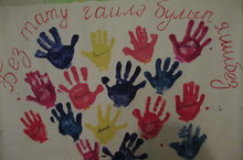 Плакатлар ясау: "Без - тату гаилә булып яшибез". Сегодня в рамках "Дня дружбы" дети совместным трудом создали плакат "Мы дружная семья".