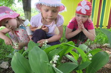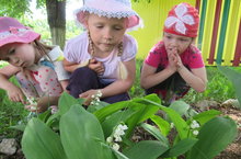 Балалар белән энҗе чәчәкләрен күзәттек. Җәйнең беренче хуш исле чәчәкләре балаларга бик ошады.