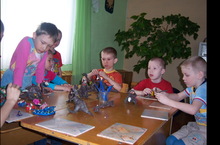 Безнең бакча балалары пластилин белән әвәләргә яраталар. Катнаш төркем буларак зур балалар кечкенәләргә үрнәк булып тора.Алар бер-берсеннән төрле алымнар белән эшләргә өйрәнәләр, күбрәк белергә омтылалар.