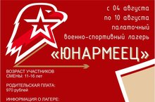 С 04 августа по 10 августа палаточный военно-спортивный лагерь "Юнармеец".