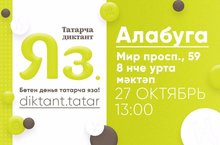 27 октябрь көнне бөтендөнья "Татарча диктант" акциясе уздырыла. Адресы: Алабуга шәһәре, 8 нче урта мәктәп. Сәг. 13.00 башлана.