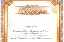 Команда МБОУ "Мортовская ООШ" заняла 1 место в Первенстве Елабужского муниципального района по баскетболу среди девушек 2000 г.р. и моложе.