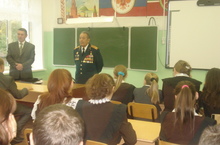 4 октября в школе состоялась встреча с ветеранами лекторской группы из г. Елабуги: председатель Совета ветеранов ЕМР отдела полиции, майор милиции, почетный сотрудник МВД Кашапов Вали Назипович и член лекторской группы Совета ветеранов ЕМР, подполковник в отставке Трофимов Иван Иванович.