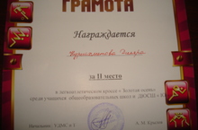20 сентябрьда Алабуганың Үзәк стадионында йөгерү буенча "Алтын көз" дигән район ярышлары узды. Егетләр арасында безнең мәктәпнең 10 сыйныф укучысы Марданов Раяз беренче урынны, ә кызлар арасында 11 сыйныф укучысы Нуриәхмәтова Диләрә икенче урынны яуладылар. Афәрин, укучылар!
