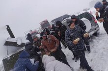 Морт мәктәбе укытучылары кар әсирлегендә калган зур йөк машиналары йөртүчеләрен кайнар ботка һәм чәй белән сыйладылар.