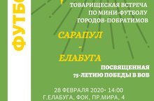 28.02.2020г. в дружественной обстановке прошла товарищеская встреча по мини-футболу городов побратимов Сарапул-Елабуга, посвященная 75-летию Победы в Великой отечественной войне. В ходе игры места распределились следующим образом: 1 место «Олимп» г. Елабуга, 2 место Елабужское СВУ МВД РФ, 3 место «Кама» г. Сарапул.