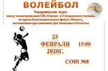 Приглашаем всех желающих посетить товарищеские игры по волейболу посвященные празднованию Дня Защитника Отечества, которое будет проходить в СОШ №8 25 февраля 2020г.