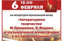 "Литературное творчество М.Пришвина, К.Федина и музыкальные иллюстрации к их произведениям". 06.02.2018