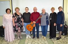 «Серебряный волонтер» Совета ветеранов города Гайсин Рахим Мухаметович с удовольствием откликнулся на просьбу провести такую встречу для пожилых людей нашего учреждения. Он собрал замечательных исполнителей, близких по духу людей, любящих и исполняющих авторские песни, в том числе и преподаватель "ДМШ №2 им.А.Т.Гараева" ЕМР Валитова Людмила Павловна..