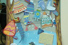 «Если вы потеряли шапку, варежки или шарф, - мы нашли их! Тепли и уюта в Новом году!». Вот такая необычная выставка работ подготовительной группы «Солнышко» (преп. Власова Н.В.) разместилась в фойе нашей школы.