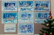 22 декабря учащиеся 1-В класса (преп. Трофимова Е.В.) разместили выставку работ, посвященных Новому году в фойе Дома-интерната для престарелых и инвалидов.